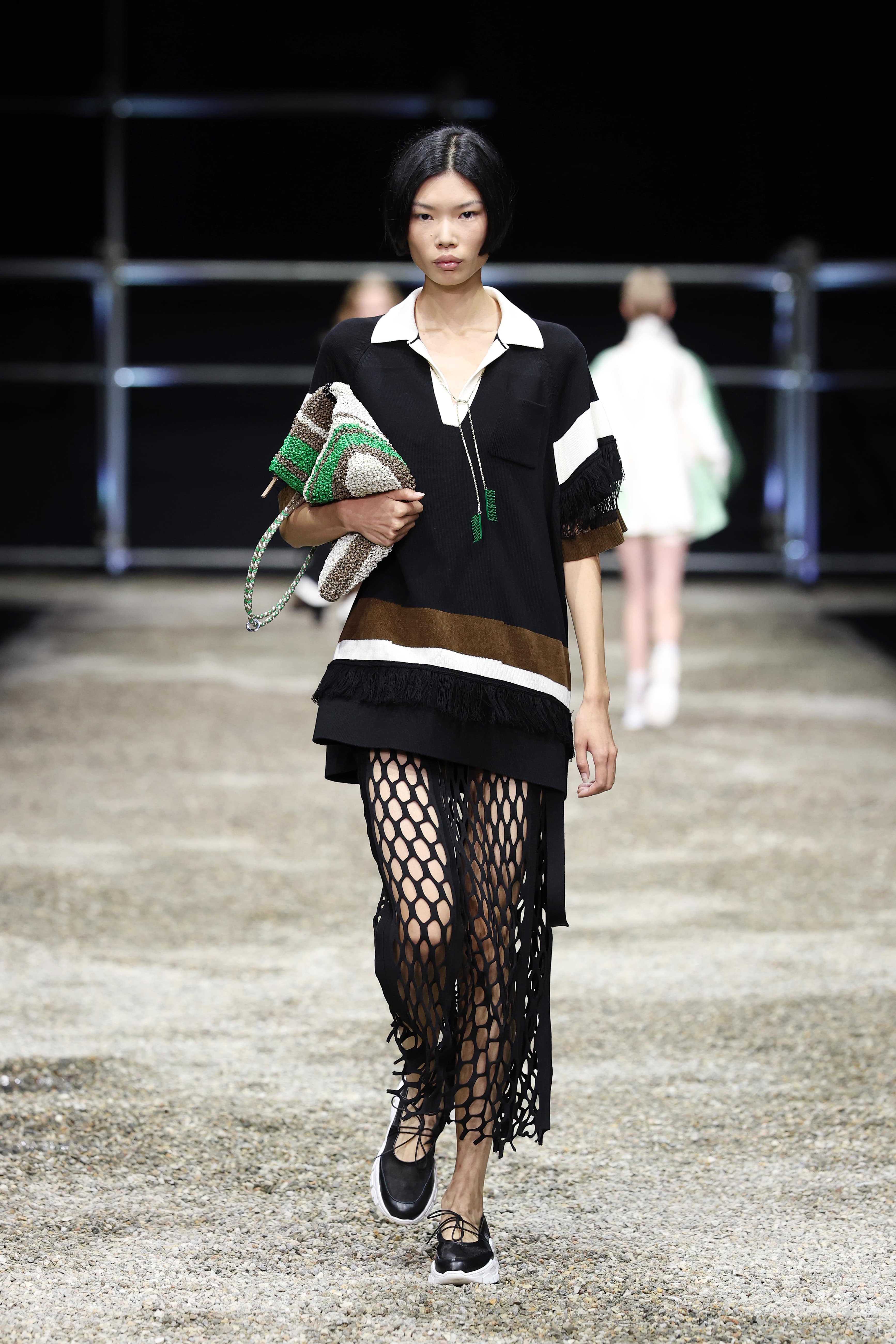La collezione alterna capi iconici e rivisitati: dal cappotto trompe-l’œil al trench corto decostruito, fino ai bermuda unisex. Una stampa tratta da un’opera di Iwasaki si trasforma in pattern su maglie mesh traspiranti, mentre polo e gonne evocano le reti dei cantieri industriali, ribadendo l’idea che anche l’ordinario, se reinterpretato, può diventare arte da indossare.