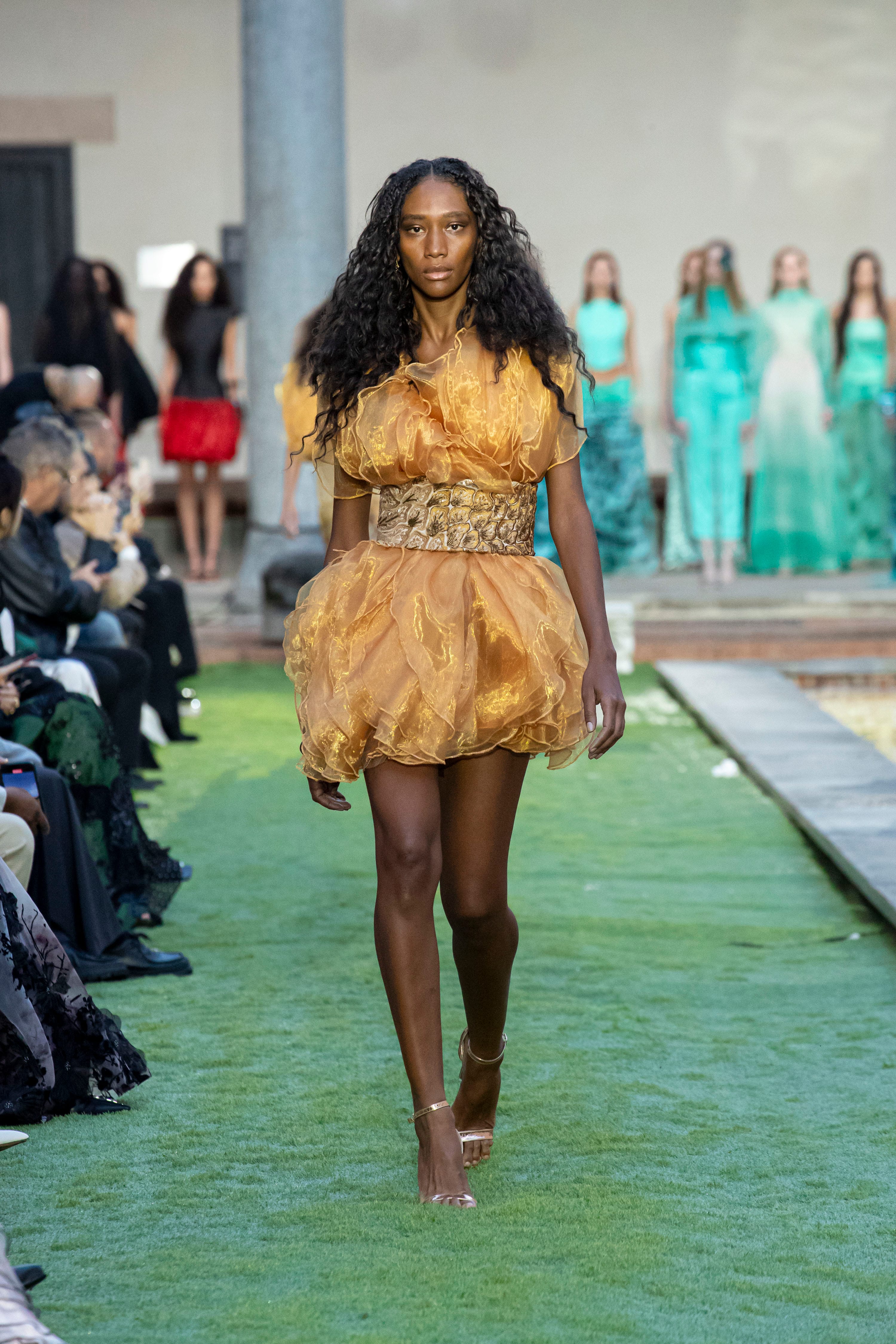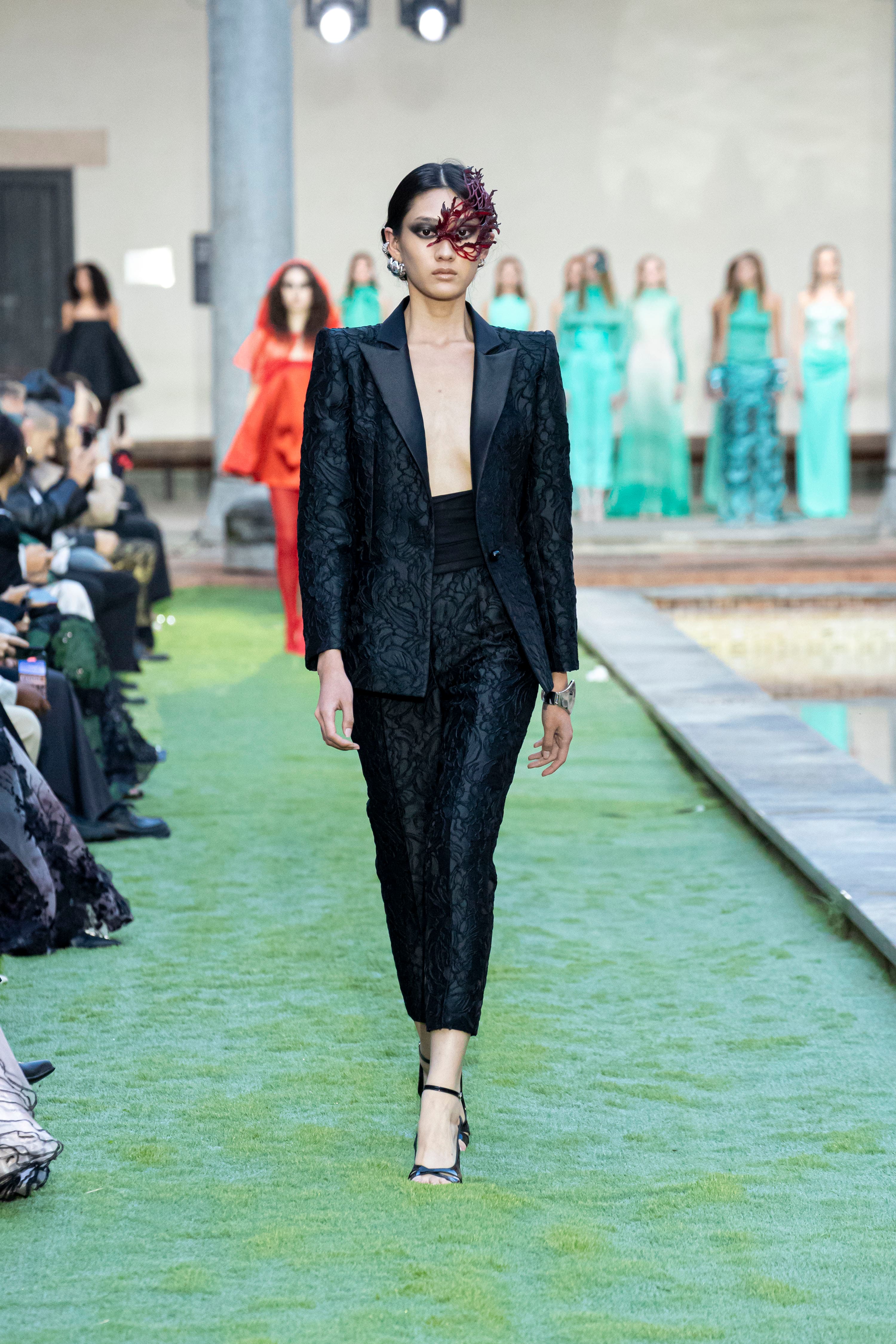 In passerella, le silhouette oscillano tra fluidità e struttura, dando vita a figure avvolte da veli e volumi che sembrano sospesi tra realtà e sogno. La collezione non si limita a vestire, ma celebra la donna come protagonista della propria storia: audace, libera, “folle” nel senso più autentico e potente del termine.