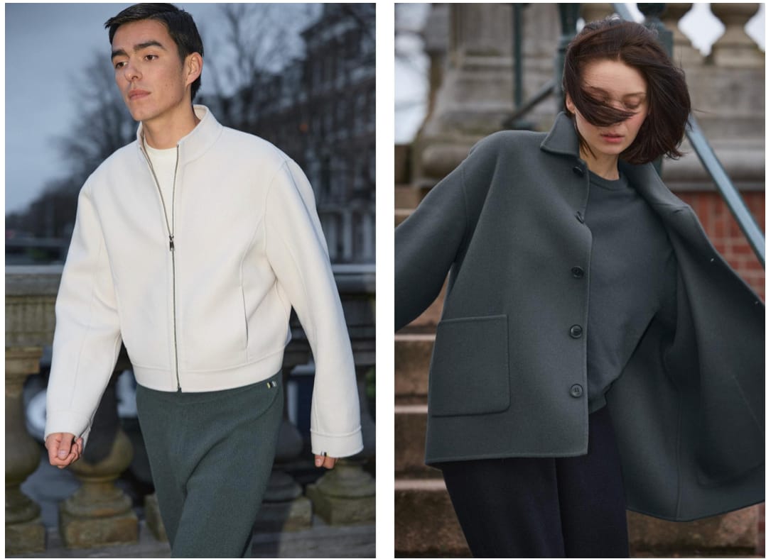 Il debutto del double-face: tre giacche simbolo della collezione Per la prima volta, Extreme Cashmere introduce il tessuto double-face con tre giacche iconiche: Motor, Maker e Bog. Realizzate con una raffinata miscela di 70% lana e 30% cashmere, queste giacche incarnano la maestria artigianale e il design funzionale, ideali per un layering rilassato e sofisticato. Ogni modello rivisita silhouette classiche con dettagli inaspettati: