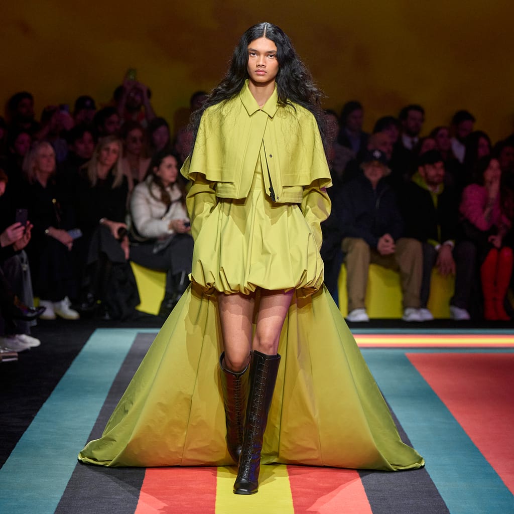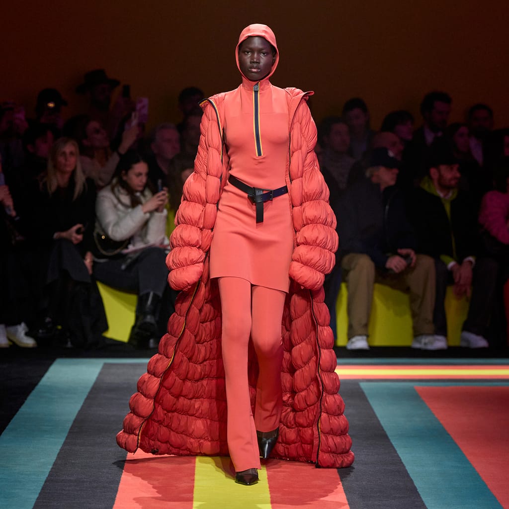 La FW25 non si ferma ai capispalla: la stylist Elena Tejedor firma look che esaltano il potere del layering, con maglieria avvolgente, gonne in lana e nylon, pantaloni cargo dal taglio sartoriale e abiti in Scuba che scolpiscono la figura con eleganza. Tra i pezzi più audaci, il body imbottito in tessuto arricciato, un twist inedito che aggiunge carattere e dinamismo alla collezione.