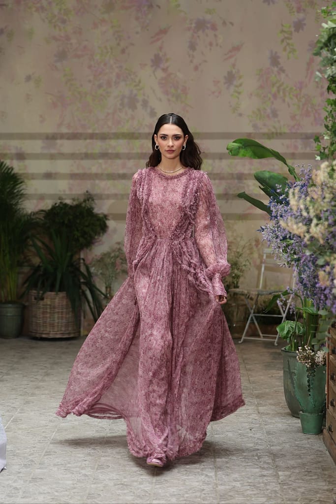 La palette cromatica gioca con tre storie colore principali: i rosa, che dai toni più dusty e cipriati trascolorano nel lilla o nel tortora e raggiungono le profondità del rubino, del bordeaux e del melanzana, con tocchi di magenta; i verdi, dal muschio al salvia; i blu, intensi e quasi navy, sino ad arrivare al nero.